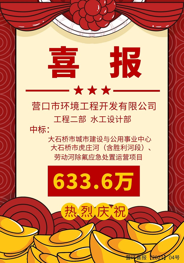 營口市環(huán)境工程開發(fā)有限公司中標大石橋市城市建設與公用事業(yè)中心大石橋市虎莊河(含勝利河段)、勞動河除氟應急處置運勞項目