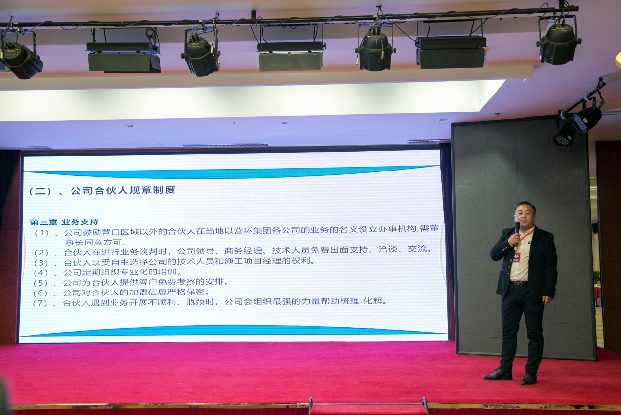 營口市環(huán)境工程開發(fā)有限公司賈喜東商務(wù)副總做《如何輕松達(dá)到事業(yè)另一個頂峰》報告,報告中就如何尋找項目、如何提高項目成功率及如何跟蹤已簽約項目、讓老客戶再次購買和轉(zhuǎn)介紹,進(jìn)行分析講解。